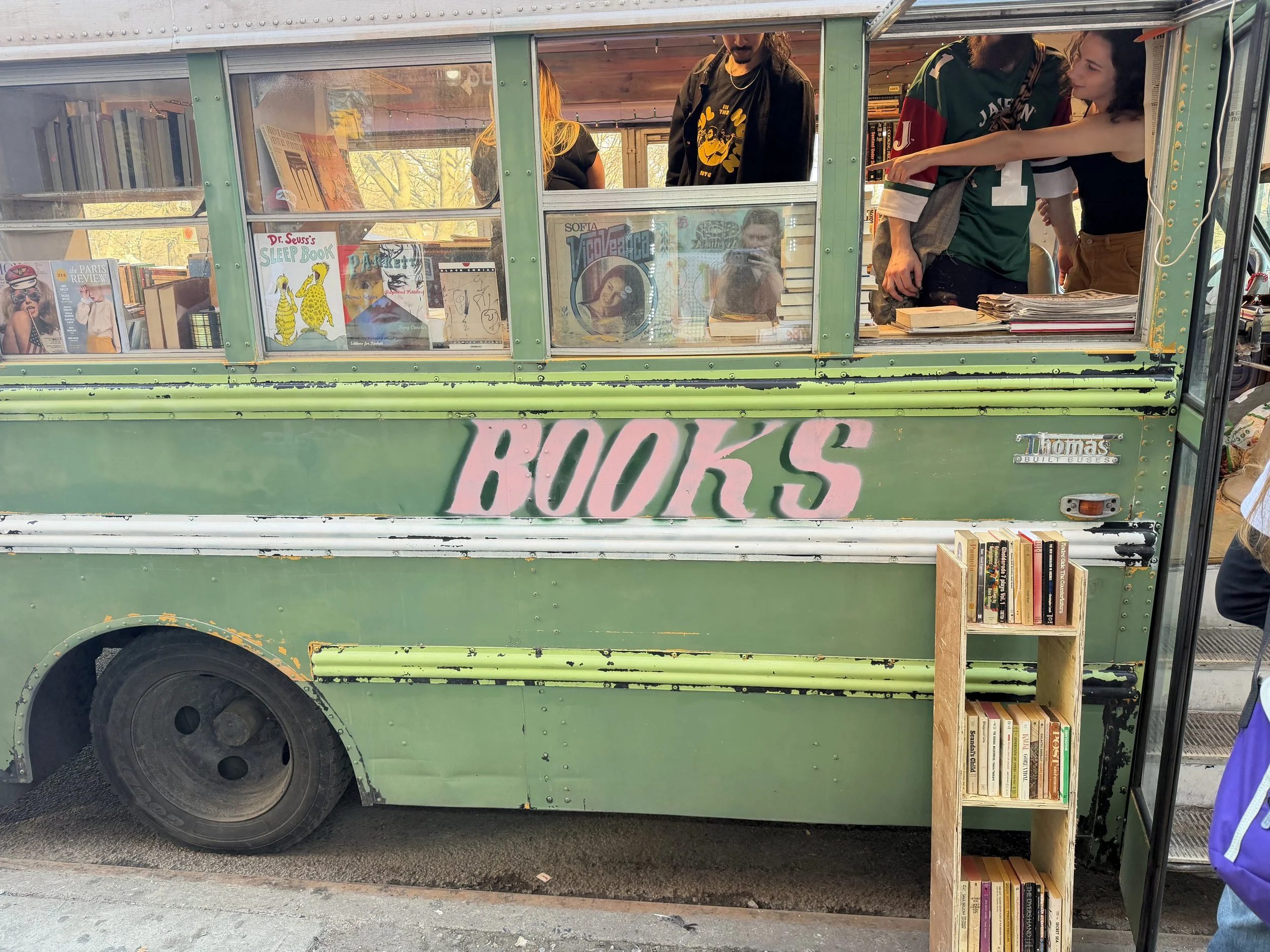 Take the BookMobile–a pale green school bus you can find parked on varying streets in Alphabet City…